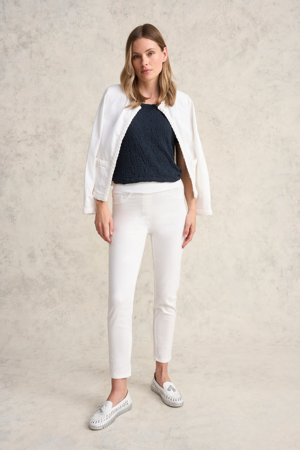 We love the crinkle effect of this fresh Ink-coloured t-shirt. Drawing on the French marinière style, this t-shirt features button detailing along the wearer’s left as well as a smart crew neck. It’s an all-season top that will bring elegance to any ensemble like our Bengajean® 7/8th Button Detail and Harli Cross Strap.