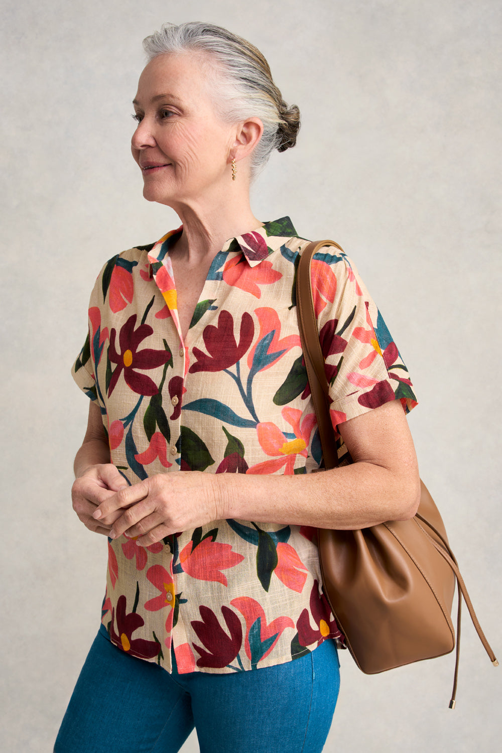 Crafted from cotton gauze, a new fabrication for Blue Illusion, this textured and semi-sheer printed blouse offers a boxy fit and cropped length that is both comfortable and trending for summer. Featuring the Joyful Floral print of our new Joie collection, it’s easy to create an outfit that you’ll love with this whimsical blouse as your starting point.